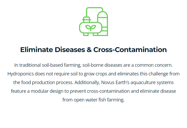 Hydroponics solves many of the issues of traditional agriculture, and is currently an accepted agricultural practice in Canada. Aquaponics combines the benefits of vertical hydroponics and recirculating vertical aquaculture farming, by mimicking a natural ecosystem where animals and plants form a symbiotic relationship. Aquaponics is not yet approved in Canada, but may be in our near future and Novus has a plan ready for when this change happens.