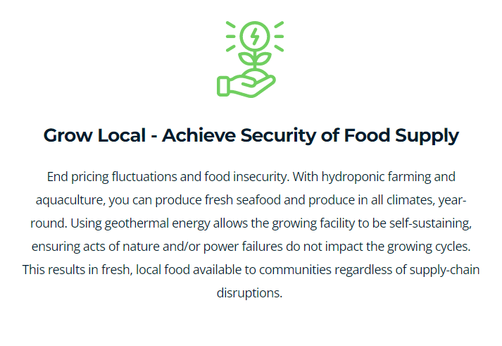 Novus Earth’s controlled environment agricultural facilities are operated entirely on sustainable geothermal energy. The sustainable energy provides both the heat and electricity needed to develop a customizable growing environment for the production of aquatic organisms (fish/shrimp) and produce (fruits/vegetables).